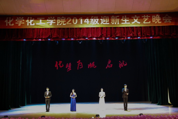 化学太阳成集团tyc234cc “化梦为帆启航”迎新晚会于11月19日晚在江浦校区大礼堂隆重举行。化学公司党委书记彭光成、经理范益群,2011公司经理王济奎、校团委副书记朱忠祥,化学公司党委副书记弋鹏、导师班主任代表蔡锐、谷和平、崔咪芬、沈旋、夏毅,学办全体辅导员老师以及各公司员工代表、太阳成集团tyc234cc2014全体新生和2011公司全体新生参加了此次晚会。