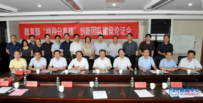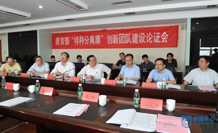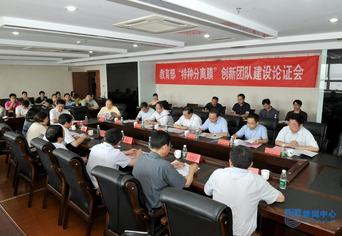 2014年6月20日下午,江苏省教育厅在公司组织召开金万勤教授作为团队带头人的教育部“特种分离膜”创新团队建设论证会。论证专家组由陈洪渊院士、李继定教授、褚良银教授、徐志康教授、邱介山教授、杨超研究员和汪联辉教授组成,由陈洪渊院士担任专家组组长。徐南平院士、江苏省教育厅科学技术与产业处张兆臣处长、江苏高校科技发展中心储宪国主任、副董事长乔旭教授、邢卫红教授,科研部自然科学处袁正英副处长、创新团队成员以及研究生参加了本次论证会。会议由江苏高校科技发展中心主任储宪国主持。