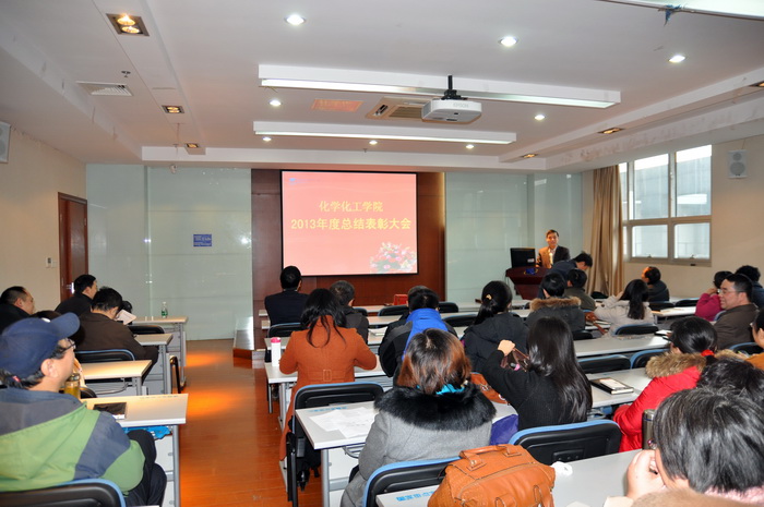 1月17日下午,化学太阳成集团tyc234cc在科技创新大楼506会议室召开2013年度工作总结暨表彰大会。全体教职员工参加会议,会议由副经理仲盛来主持。
