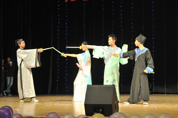 随后,各类节目纷纷登场,异彩纷呈。话剧《竞争》以现实生活为原型,引人发笑的同时发人深省,让人们明白合作才能共赢;公司13级新生创作的《百字令》以南工大“明德、厚学、沉毅、笃行”为题作藏头诗,发扬传承工大精神,朗诵感情丰富饱满,引得观众拍手叫好;乡村、摇滚、流行不同风格的吉他弹唱展示了新生的多才多艺;劲爆的舞蹈《Double Show》女生性感辣舞,男生活力帅气;小班寄语表达了对新生的深切期望,他们的舞蹈表演更是掀起了整场晚会的高潮;四首歌曲串烧让观众大饱耳福;搞笑的话剧《十面埋伏》不仅博得观众阵阵掌声,更明确地告诉所有同学,在大学中,要保持良好学风考风,不走邪门歪道。最后,在学联文体中心及所有演员合唱的《就在今天》中本场晚会落下了帷幕。