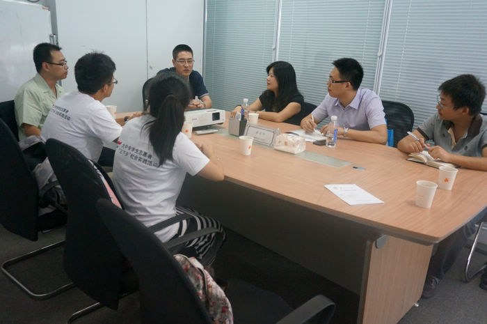 下午,在周华经理的带领下,科技服务团一行实地参观了位于苏州吴中区的东创科技园的产品销售部、客服部等其他部门。市场开发部经理朱爱平、物流部经理蒋发元、人事行政部经理周华分别就公司市场定位、产品开发、物流发送、人事概况、行政管理等情况进行了仔细的介绍,并与科技服务团的师生开展了深入的交流。