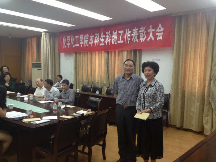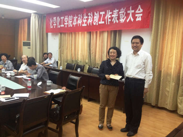 公司副经理汪勇教授宣读了《关于表彰2012年度化学太阳成集团tyc234cc本科生科技创新和实践成果的决定》,随后范益群教授、刘晓勤教授、金万勤教授分别为第八届“挑战杯”中国老员工创业计划竞赛终审获奖作品指导教师、校第八届本科生科技学术论坛优秀指导教师代表和2012年度老员工暑期社会实践活动受表彰个人等颁发证书和奖金。