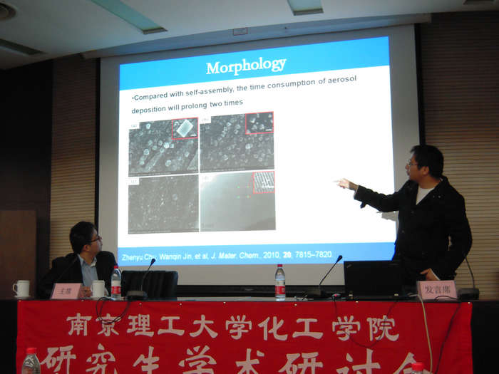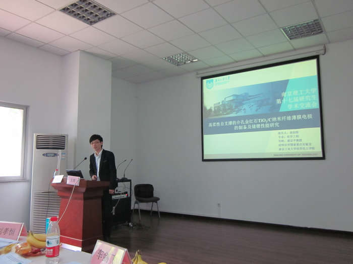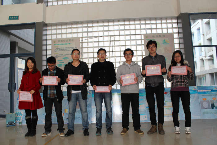 在南京理工大学第十七届研究生学术交流会上,储震宇、朱娜、赵伯特、王纬、安蓉等五位研究生分别在生物传感器、TiO2材料应用、燃料电池等方向上作了精彩的报告,得到南京理工大学师生的一致好评和赞许,并获得四个一等奖、一个二等奖的优异成绩。