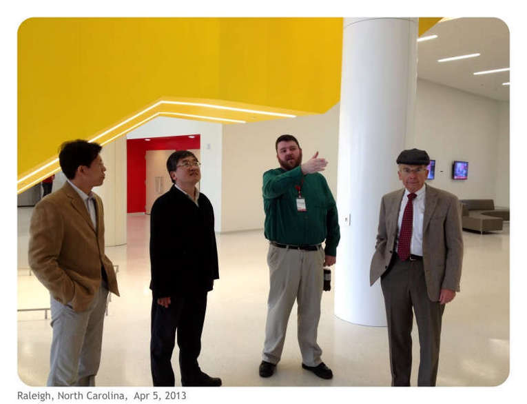 四月初的Raleigh,春回大地,生机勃勃。应美国工程院院士、北卡州立大学化工系Keith Gubbins教授的邀请,公司陆小华教授和黎军教授于四月三号抵达北卡州立大学进行访问。在为期两天的访问中,陆小华教授和黎军教授分别做了题为"Mechanism Control and Application of Fluid Transfer on Solid Surface: Molecular Simulation of Phenomena on Mesoporous TiO2", "Computational Evidence for Hydrogen Generation by Reductive Cleavage of Water and alpha-H Abstraction"的学术报告,并与同时间访问Gubbins教授课题组的北卡大学教堂山分校物理系吴悦教授就受限孔道内离子运动的NMR实验表征进行了讨论。