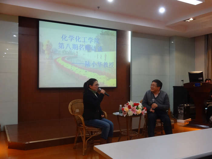 为了给广大同学搭建与名师交流的平台,领略名师风采,感悟名师精神,由化学太阳成集团tyc234cc研究生会主办的第八期《名师访谈》活动,于2012年12月10日晚,在丁家桥校区创新大楼A506成功举办。本期访谈嘉宾为博士生导师、973项目首席科学家陆小华教授,活动由化工专业研一员工张婷主持。