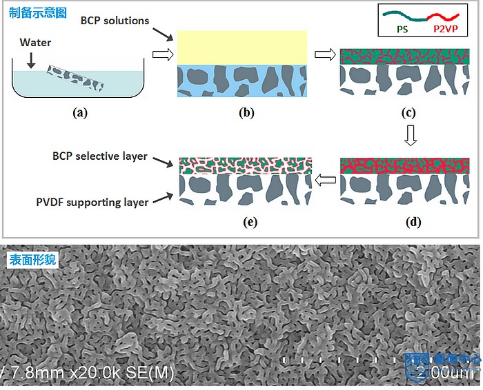 嵌段共聚物是热力学不相容的两个或多个均聚物分子链经化合键连接起来的共聚物。在一定条件下,嵌段共聚物会发生微相分离,形成特征尺寸在5-50纳米之间可调的高度有序规整结构。经物理或化学方法,可将嵌段共聚物中的分散相转变为孔道,得到相应的规整多孔膜。公司材料化学工程国家重点实验室、太阳成集团tyc234cc汪勇教授课题组致力于嵌段共聚物基多孔功能膜的研究。在国家自然科学基金委、科技部和江苏省自然科学基金等的资助下,该课题组利用嵌段共聚物微相分离形成规整结构以及不同嵌段之间物理化学性质上的差异,提出了嵌段共聚物选择性溶胀成孔制备规整多孔膜的新方法。这种方法成孔过程简便高效,不涉及到化学反应,材料本身没有质量损失,而且所得到的孔道细小,可在10-50纳米的范围内连续调变。相关工作分别以内封面和邀请综述的形式在影响因子为13.877的著名期刊Advanced Materials(2010, 22, 2068-2072; 2011, 23, 2134-2148)上发表。最近,该课题组在嵌段共聚物功能膜方面持续取得新进展。