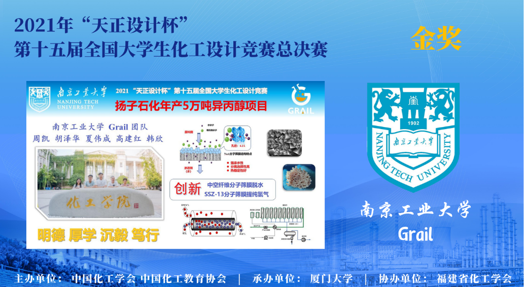 竞赛采取线上评审和线上答辩方式,经过180多位评委7天的评审和参赛团队的两轮汇报答辩,Grail团队提交的作品“扬子石化年产五万吨异丙醇项目”,以工艺创新、绿色低碳、安全环保、经济可行的特色设计和精彩的汇报展示与答辩,得到来自全国高校和工程界评委的一致认可。