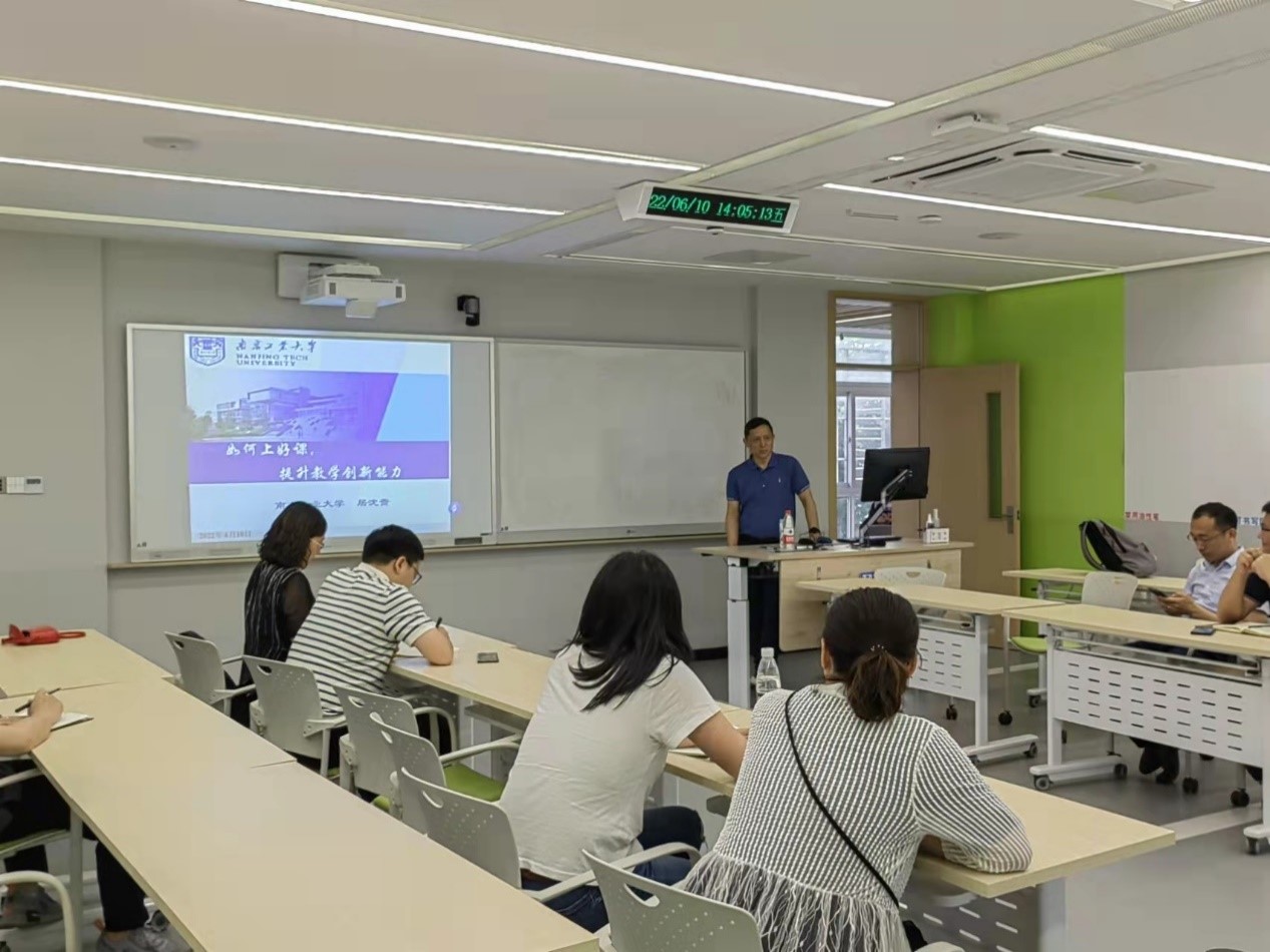 居老师以《如何上好课,提升教学创新能力》为题,做了精彩的报告。报告从大学教育目的、高校教师责任、教学创新、成为好老师的办法和教学大赛的相关情况等五个方面讲述了从知识(灌输)到能力(训练)再到素质(培养)培养人才的过程,通过提高教学艺术,引导员工灵活地学习和运用知识,最终达到知识传授和思想教育相统一。最后居老师以《江城子•文化传承》表达心境,与各位老师共勉:“化作春泥待花开,怀大爱,辉煌再。文化承载,挥笔洒舞台。深耕细作梦不改,观沧海,初心在”。会后,居老师回答了青年教师提出的关于教学创新和课堂教学等相关问题,并与参会教师在教学改革和创新方面进行了深入的交流和探讨。