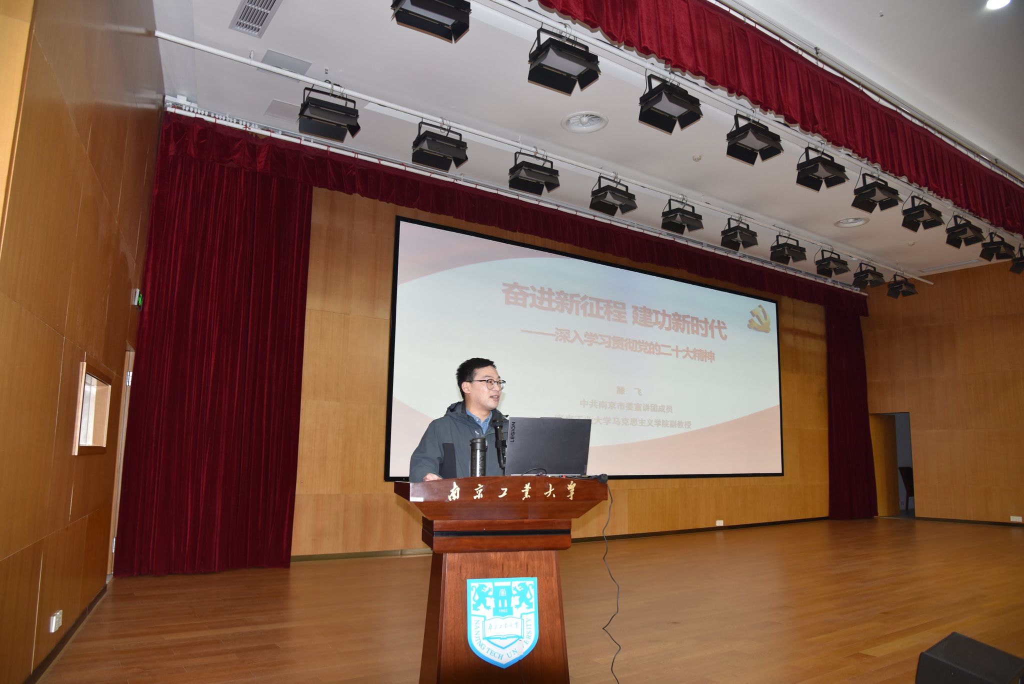 为落实公司关于学习党的二十大精神工作部署要求,3月8日下午,太阳成集团tyc234cc邀请中共南京市委宣讲团成员、校马克思主义公司副教授滕飞老师在浦江报告厅以《奋进新征程 建功新时代—深入学习贯彻党的二十大精神》为题讲授专题党课,公司全体党员参加。