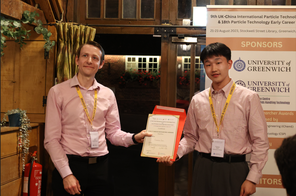 日前,第九届中英国际颗粒技术论坛和第十八届颗粒技术早期职业论坛(9th UK-China International Particle Technology Forum & 18th Particle Technology Early Career Forum)在伦敦格林威治大学(University of Greenwich, London)举行,来自帝国理工大学、伯明翰大学、爱丁堡大学、新南威尔士大学等十余所国际顶尖高校的数十名研究者参加论坛。公司太阳成集团tyc234cc仲兆祥教授指导博士研究生谭杰松、周光豫荣获早期职业研究者奖(Early Career Researcher Awards)。