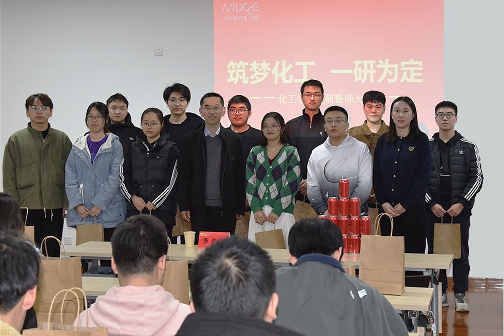 化工2006班李德立同学带领同学们进行宣誓:“考研虽艰,不敌无悔信念;坚定之择,可铸青云之志!严格自律,惜时如金,团结协作,奋力拼搏!研途之征程,我必搏击长空!自律加勤奋,我必终成硕果!考研上岸,我行!考研征程,必胜!”同学们郑重宣誓,铿锵有力的宣誓声响彻会场。