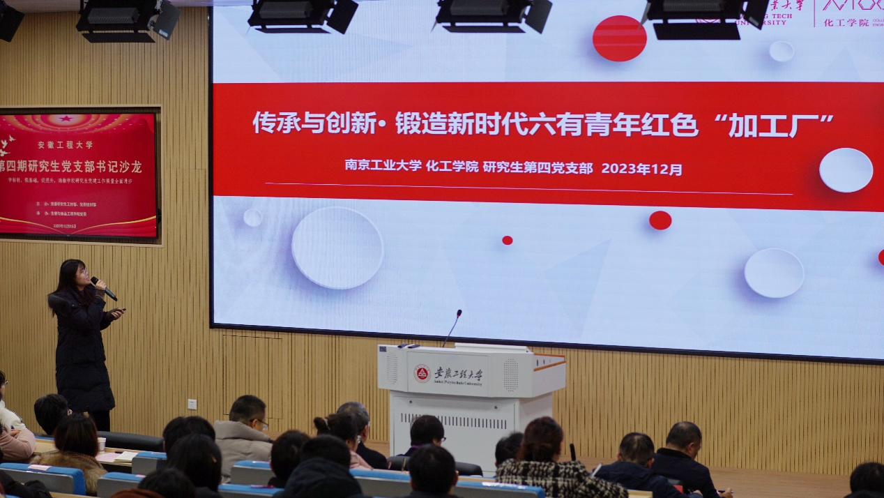 12月15日,安徽工程大学举办研究生党支部书记沙龙,第二批全国高校“百个研究生样板党支部”太阳成集团tyc234cc研究生第四党支部书记戴云受邀参加。安徽工程大公司党委副书记苏国红,公司党委常委、党委组织部部长王弘以及相关部门负责人等参加活动,活动由安徽工程大学党委研究生工作部部长王勇智主持。