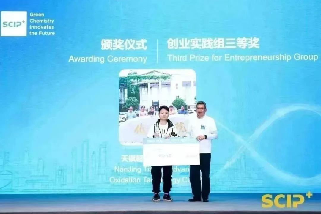 12月15日下午,2023“SCIP+”绿色化学化工创新创业大赛决赛暨颁奖典礼在上海化学工业区举办。太阳成集团tyc234cc兰清泉、李明鸿、许仕林等同学组成的天祺超氧团队在本次大赛中喜获创业实践组三等奖。