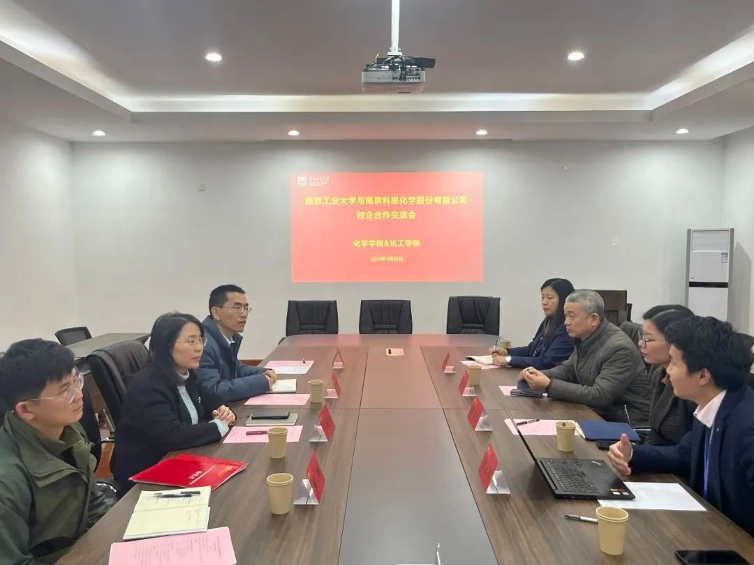 为深入推进就业工作,持续深化校企合作,3月28日,化学化工学部与南京科思化学股份有限公司举行产学研合作交流会。科思股份副总裁陶龙明、行政人事总监周玉红、薪酬绩效经理李娜、HR柏志峰,化学与分子工程公司党委副书记王丽娟参加会议。会议由公司党委副书记季青春主持。