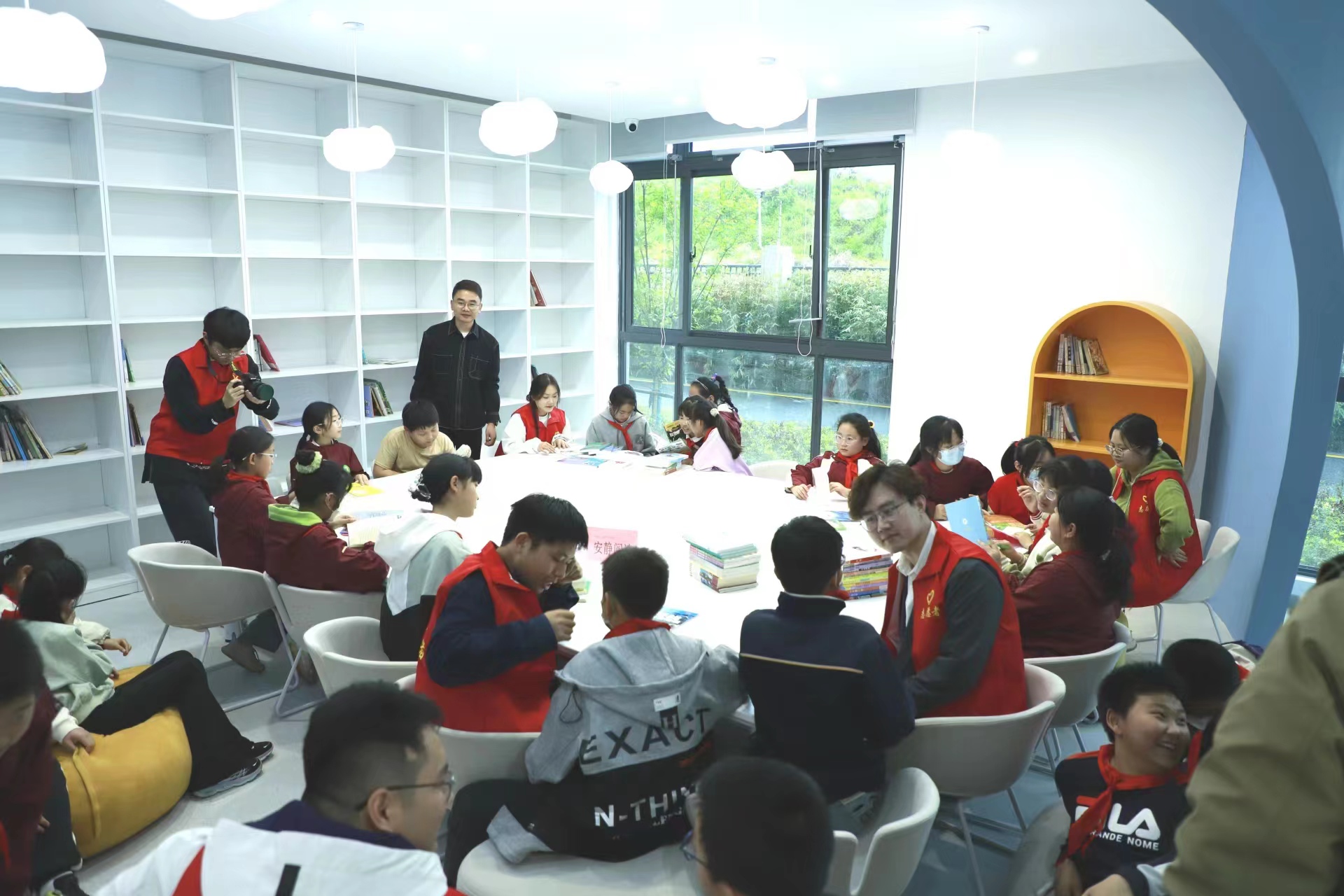 公司青年志愿者一行首先参观了图书馆,并通过读书分享会的形式,与小员工坐在一起交流,面对面地推荐中外名著,简述故事情节,并对书中经典语录、科普知识进行分享,引导孩子建立阅读兴趣,培养阅读习惯,提高阅读能力。