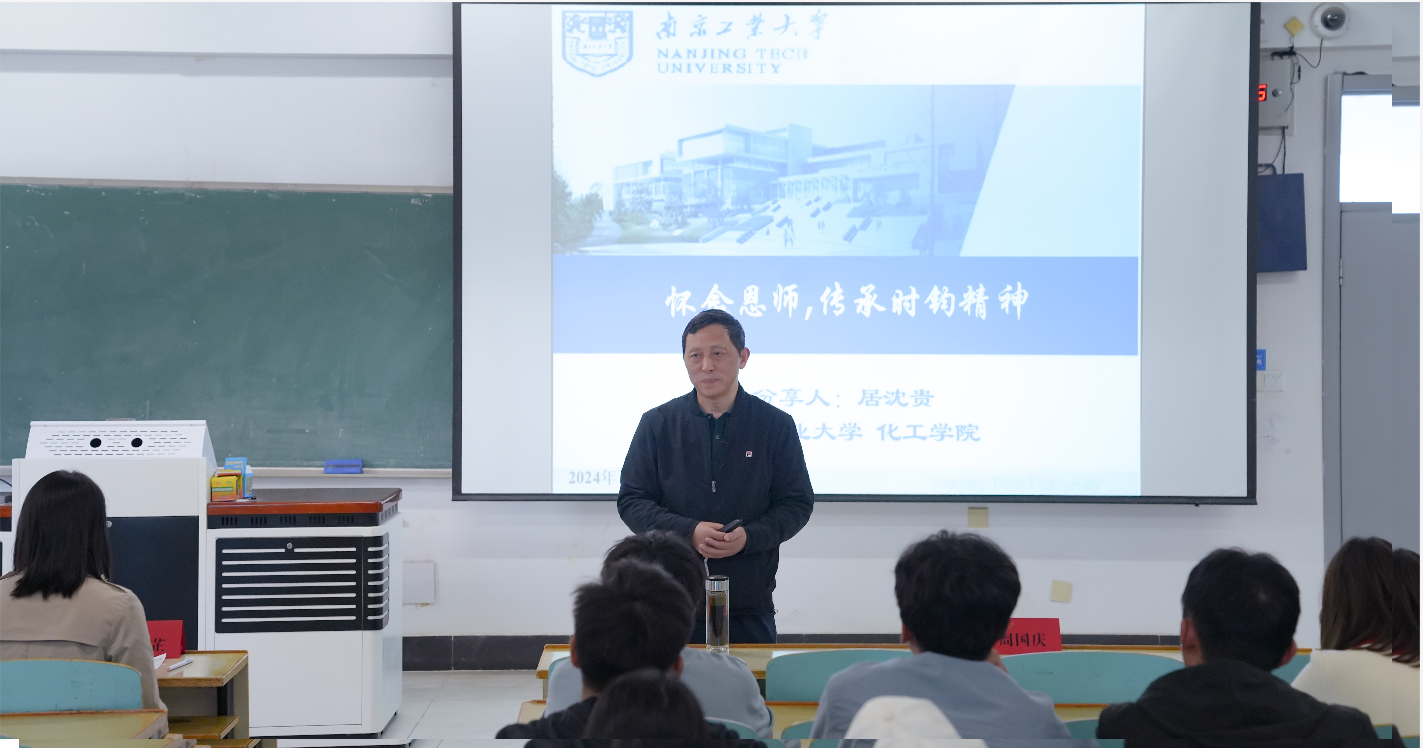 居沈贵老师和同学们分享了他与时钧先生的师生缘、课程缘,深情回忆了与时钧先生一同入党宣誓的场景,并为参会师生讲述了大先生时钧的科学家精神,并激励大家在时钧精神的润泽与感召下不断赓续前行,争做有理想、敢担当、能吃苦、肯奋斗的新时代好青年。