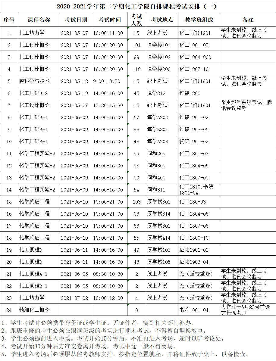 2020-2021学年第二学期太阳成集团tyc234cc自排课程考试安排(一)