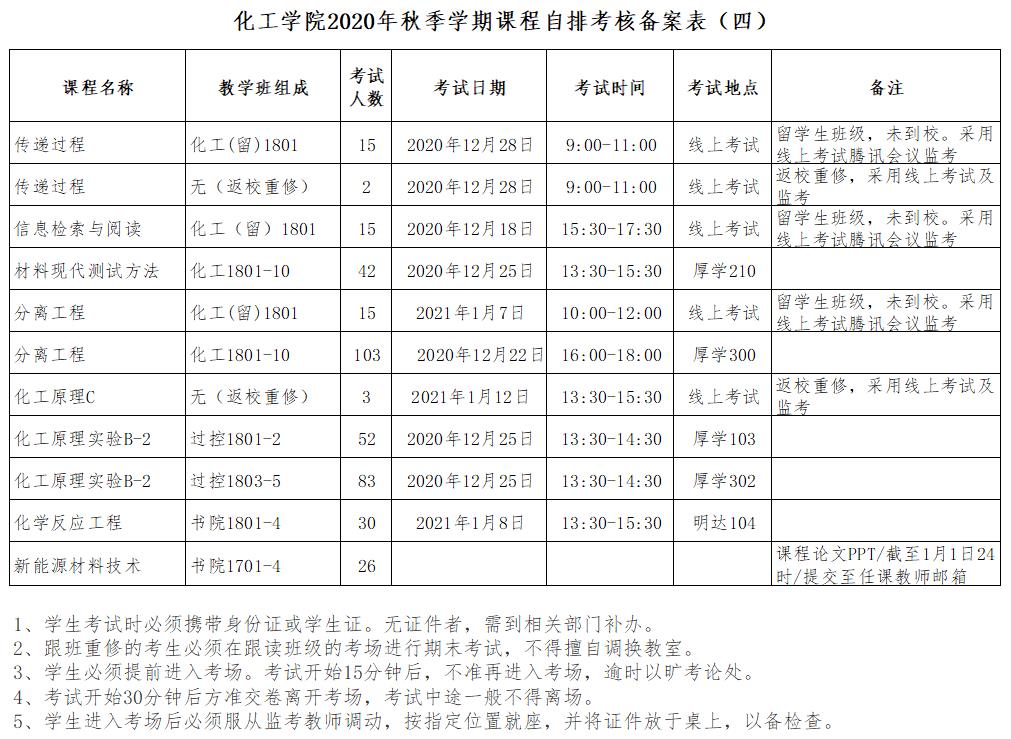 太阳成集团tyc234cc2020年秋季学期课程自排考核备案表(四)