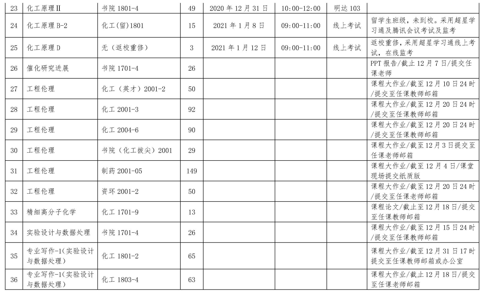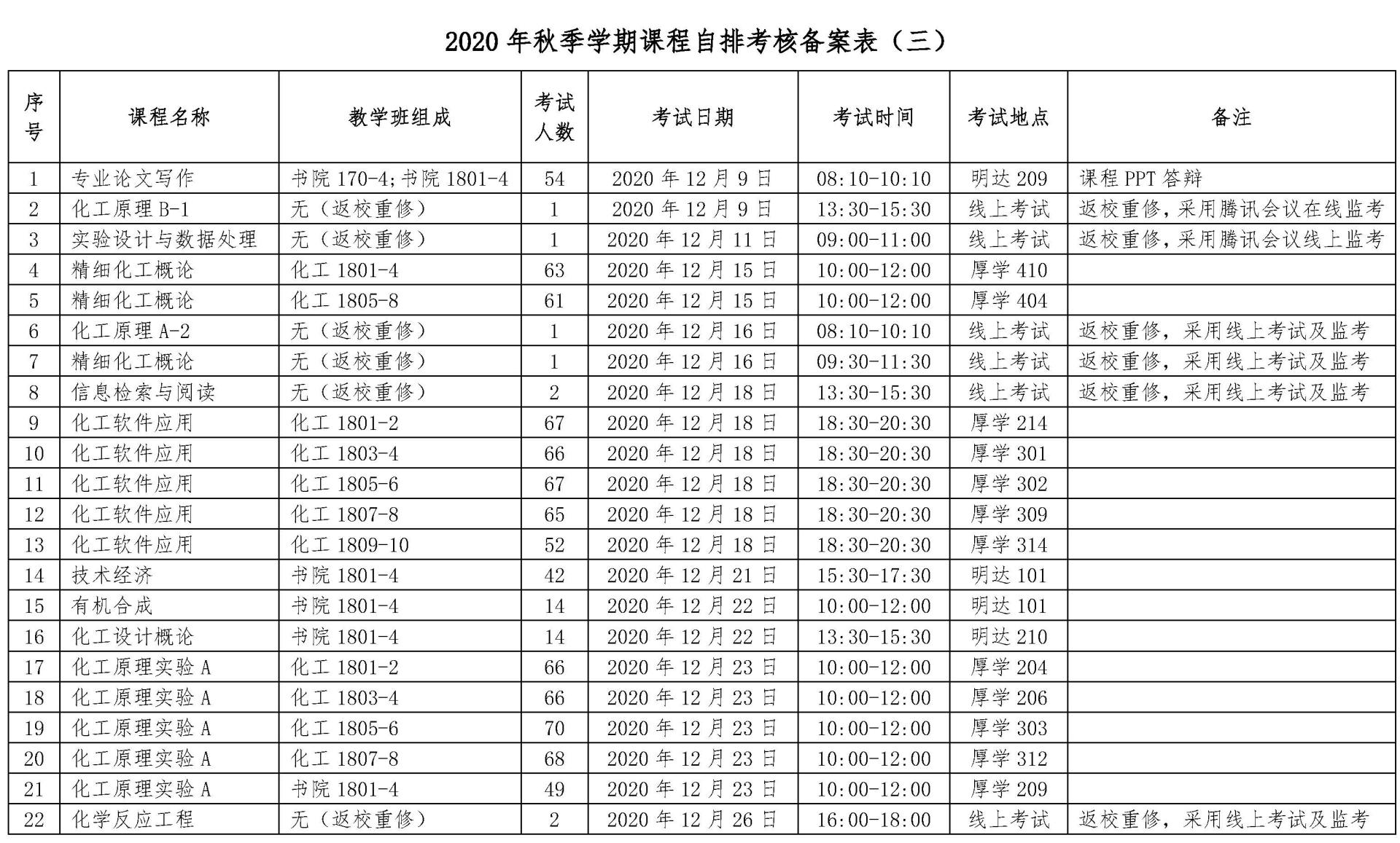 2020年秋季学期课程自排考核备案表(三)