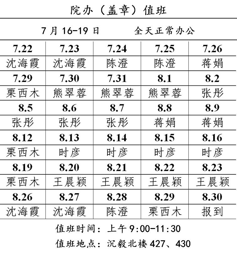 2019年暑期院办(盖章)值班安排